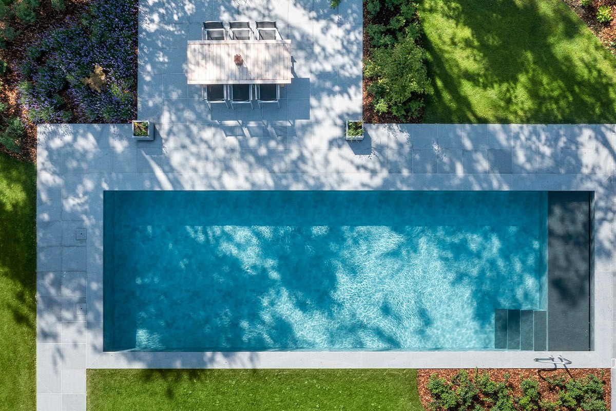 Cette piscine élégante dispose de deux terrasses adjacentes, idéales pour se détendre et prendre ses repas en plein air. La plage assise offre un espace pour jouer, se détendre et profiter du soleil. Grâce à son escalier en inox, même les plus âgés peuvent entrer et sortir de l'eau en toute sécurité et confortablement. De plus, l'agencement bien pensé permet aux petits et aux grands de profiter des joies de l'eau, chacun à sa manière.