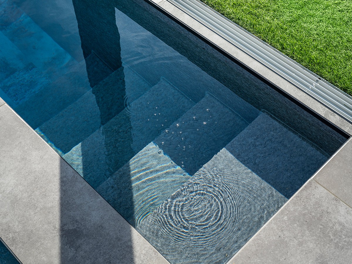 Schreppie Pools a construit ce projet en 2010 et a immédiatement remporté un prix dans le cadre de ce concours. Quinze ans plus tard, il était temps de procéder à une rénovation en profondeur : les propriétaires souhaitaient un spa intégré. Avec cette nouvelle réalisation, l'équipe décroche à nouveau une distinction. L'escalier, transformé en spa, se fond harmonieusement dans la partie piscine, l'eau s'écoulant d'un bassin à l'autre. Une conception globale qui offre confort et bien-être tout au long de l'année. L'installation est si perfectionnée sur le plan technique que le spa atteint 37 °C en à peine 30 minutes.