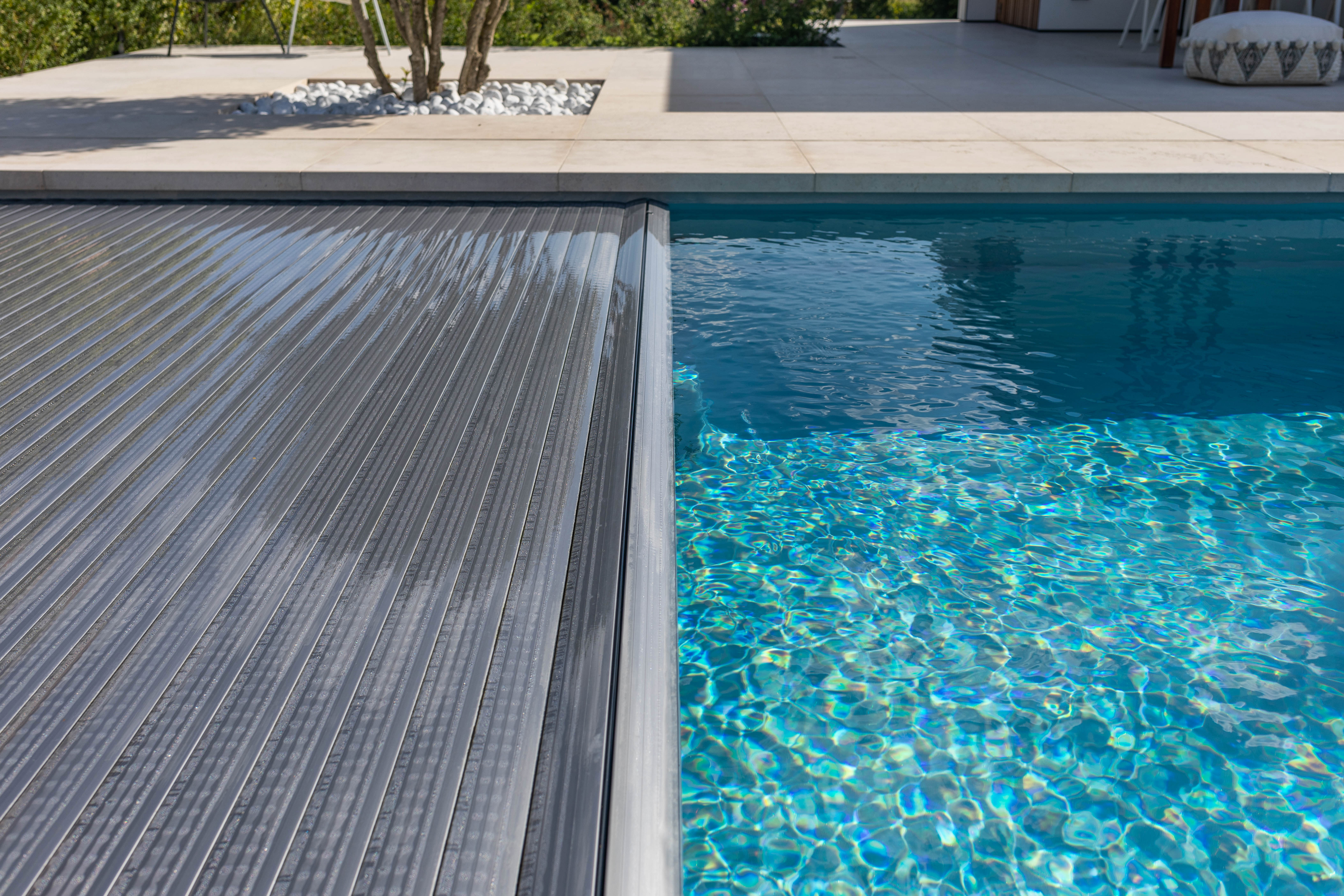 - Couverture de piscine : volet T&A polycarbonate solar anti algues, alu look