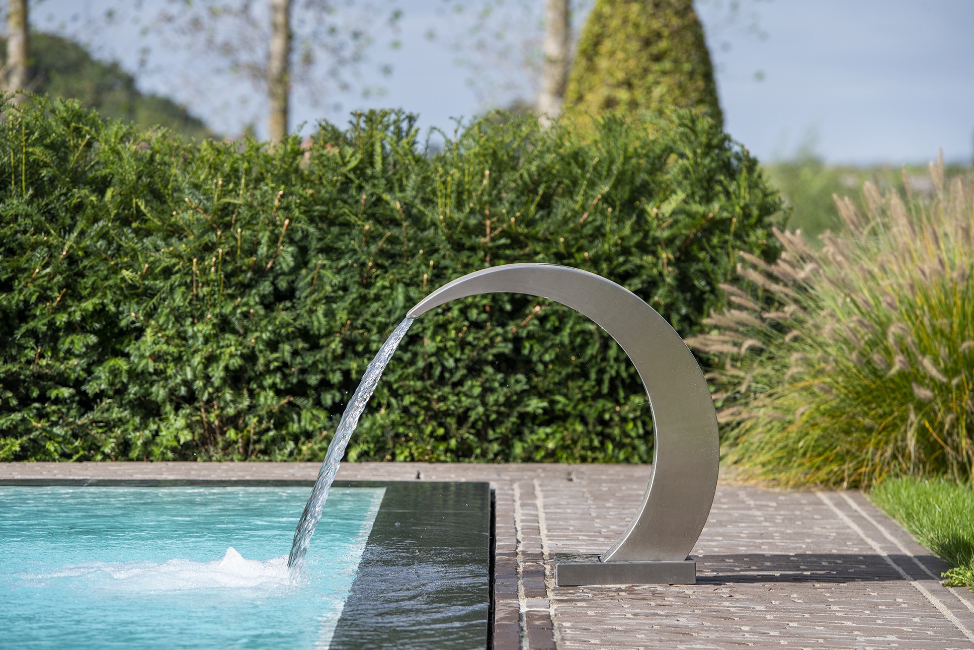 Cette magnifique piscine à débordement est un modèle Starline Infinity Line installé avec savoir-faire par le constructeur de piscines Relaxani. La pièce d'eau fait partie intégrante de ce magnifique jardin de campagne. Cette piscine, avec sa plage, ses larges marches et sa cascade apaisante, agit comme un grand miroir sur son environnement. La finition en terre cuite a rendu le projet difficile sur le plan technique, mais s'inscrit parfaitement dans le style de la villa rustique. Un bijou d'harmonie entre la beauté naturelle et le design raffiné.