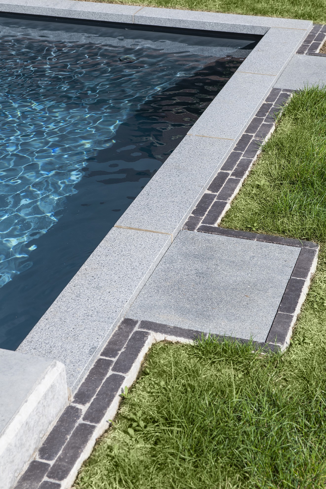 - Margelles : granit, Peperino Dark, en combinaison avec polybéton
