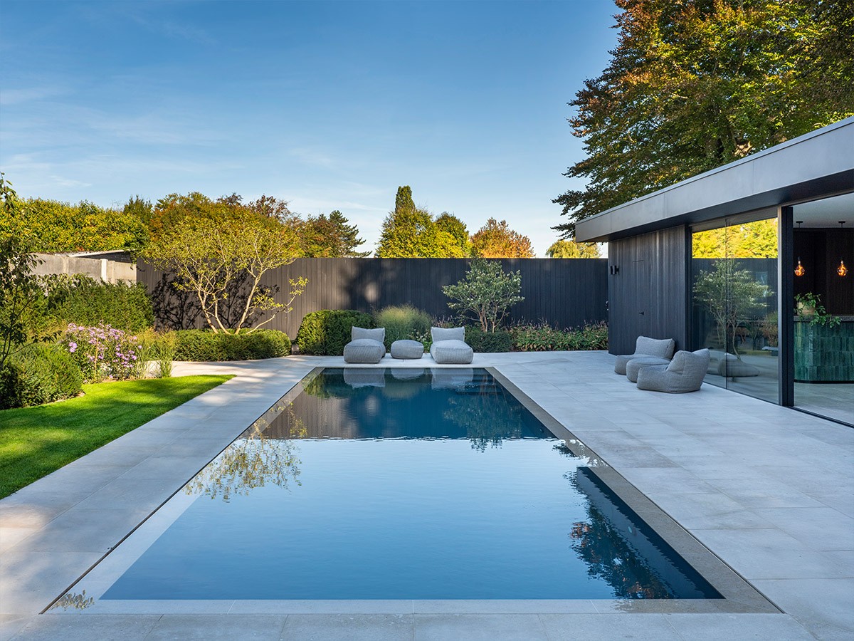 Caché derrière une charmante villa à Deerlijk se trouve une véritable perle de jardin avec une piscine à débordement raffinée qui brille dans un cadre verdoyant de rêve. La piscine est située à l'arrière du jardin, à côté d'un élégant pool house avec parois vitrées coulissantes, qui permettent une transition harmonieuse entre l'intérieur et l'extérieur. La réalisation est soignée dans les moindres détails et tout a été installé avec une extrême précision. On pourrait même dire que le local technique ressemble à un laboratoire clinique, tant le constructeur a travaillé avec minutie. Un projet qui se distingue par son esthétique et qui s'intègre parfaitement à la tranquillité des environs.
