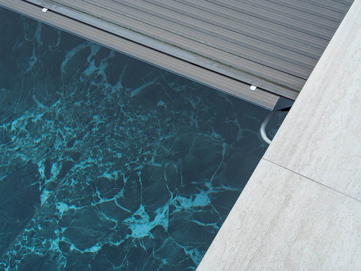 Au bord de la Lys, dans un vaste jardin offrant une vue magnifique, DcPools a réalisé une piscine à double débordement à couper le souffle. L'eau s'écoule doucement sur les deux côtés et reflète l'environnement verdoyant dans le revêtement céramique veiné de noir et de vert. L’harmonie entre la maison, l’eau et le paysage, sublimée par des finitions épurées et un escalier flottant, fait de ce projet un modèle de luxe et de perfection technique.