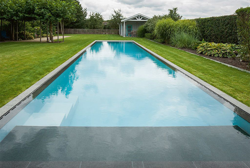 Cette magnifi que piscine apparaît comme une jolie ligne bleue au milieu d’une oasis de végétation. Le joli poolhouse en bois donne à l’ensemble un caractère champêtre et rustique. Le filtre double garantit pour sa part une eau de piscine limpide. Et grâce aux capteurs solaires séparés, la piscine invite à un petit plongeon, même par temps froid.