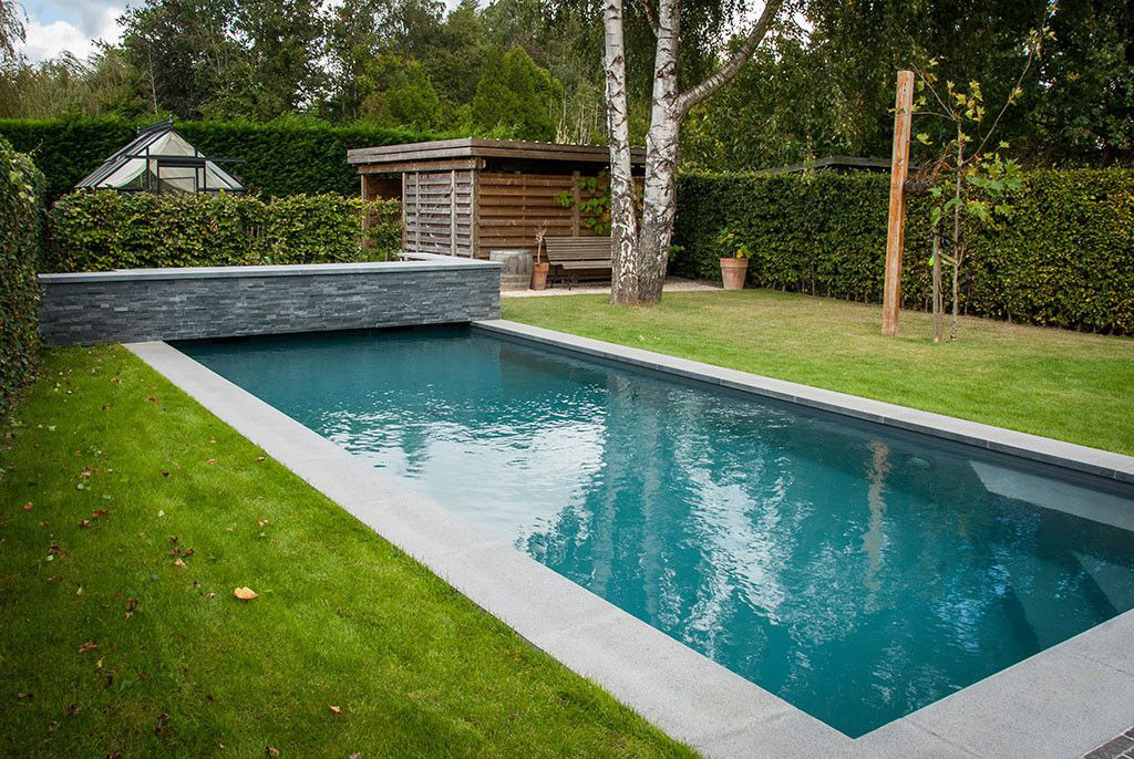 Aucun projet de piscine n’est pareil. Surtout avec des années d’expérience derrière soi, comme HDB Pools. Avec un sens certain de l’esthétique, le volet est dissimulé sous de jolies bandes de pierres. Ce qui produit une belle séparation entre le potager et le jardin décoratif. L’escalier au coin est relié à la terrasse. Une fois recouvert, les lames solaires procurent le chauffage nécessaire.