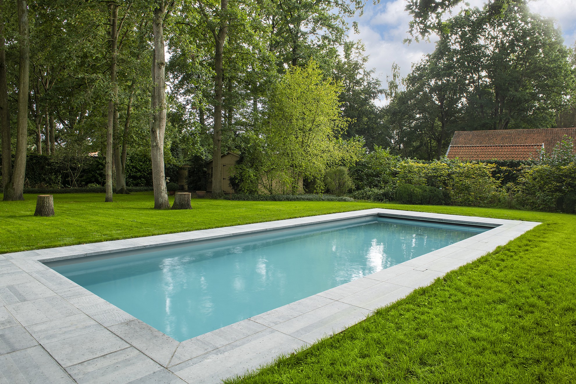 Parfaite intégration de la piscine dans le jardin